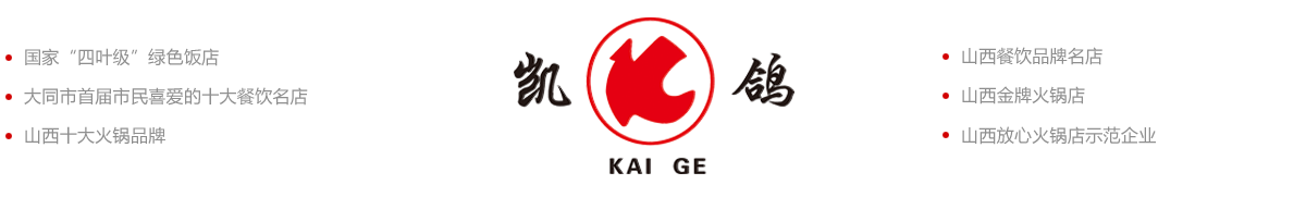 公司自成立以來,已先后榮獲******、省、市各級人民政府和有關部門頒發(fā)的“工人先鋒號”、“四葉級綠色餐飲企業”“全省就業再就業工作先進單位”“山西烹飪餐飲飯店30年功勛企業”、“山西餐飲品牌名店”、“山西******火鍋店”“山西十大火鍋品牌”“山西放心火鍋店示范企業”“大同旅游特色美食體驗店”等榮譽。2023年“凱鴿火鍋宴”“西京全羊宴”,被******中餐業聯合會授予“國際中餐名宴”稱號。2020年和2022年累計為抗擊疫情捐贈餐費約136.8萬元。
